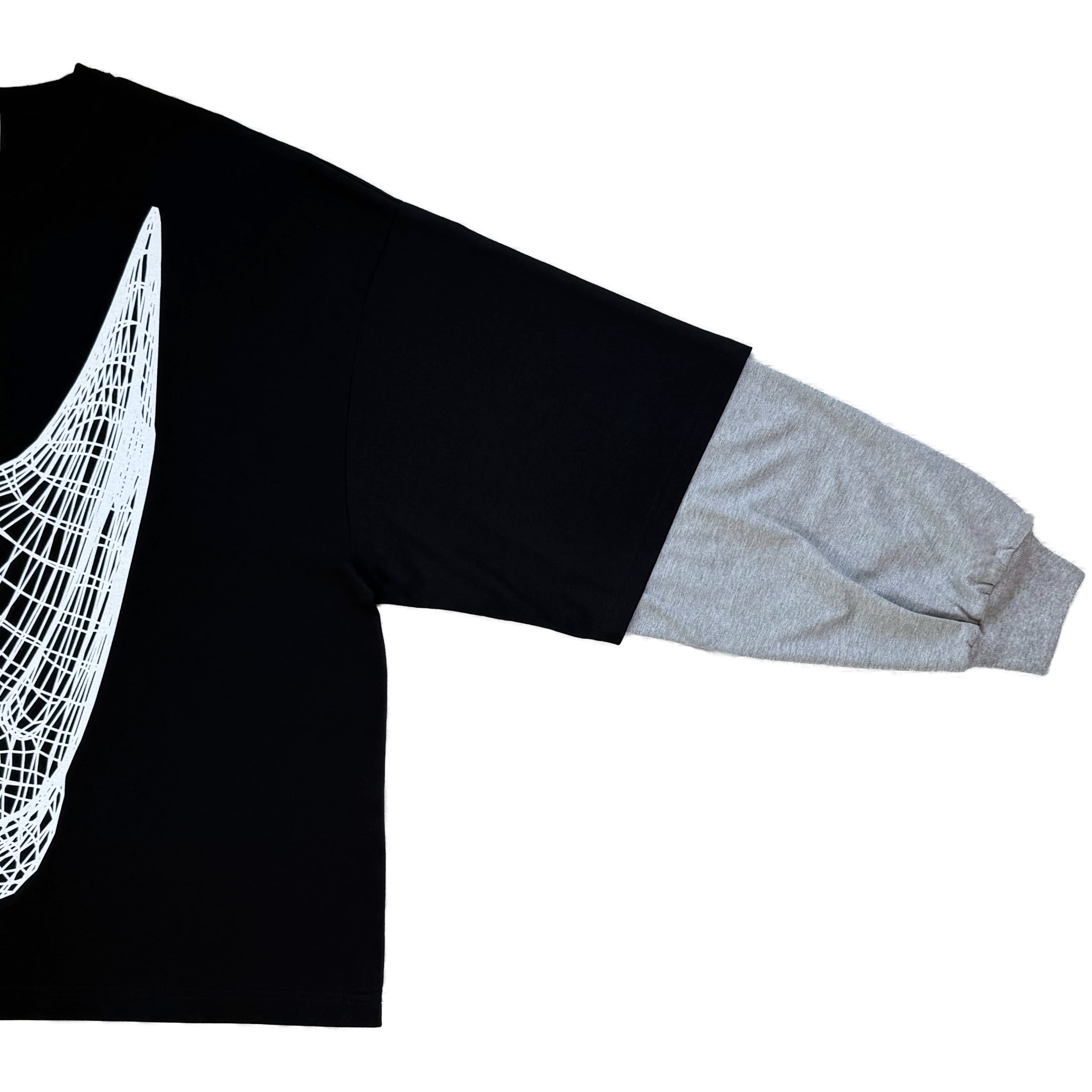 定番型のレイヤードデザインティにグラフィックをプリント。