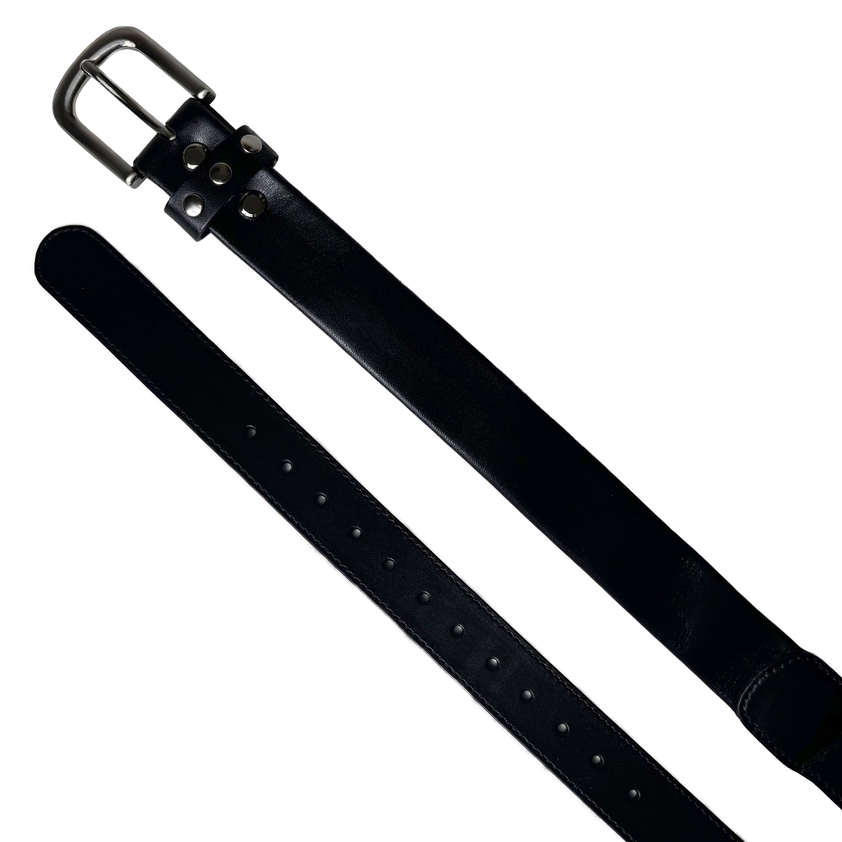 内側に隠しポケットを搭載したリアルレザーベルト。フロントにスタッズを配置。