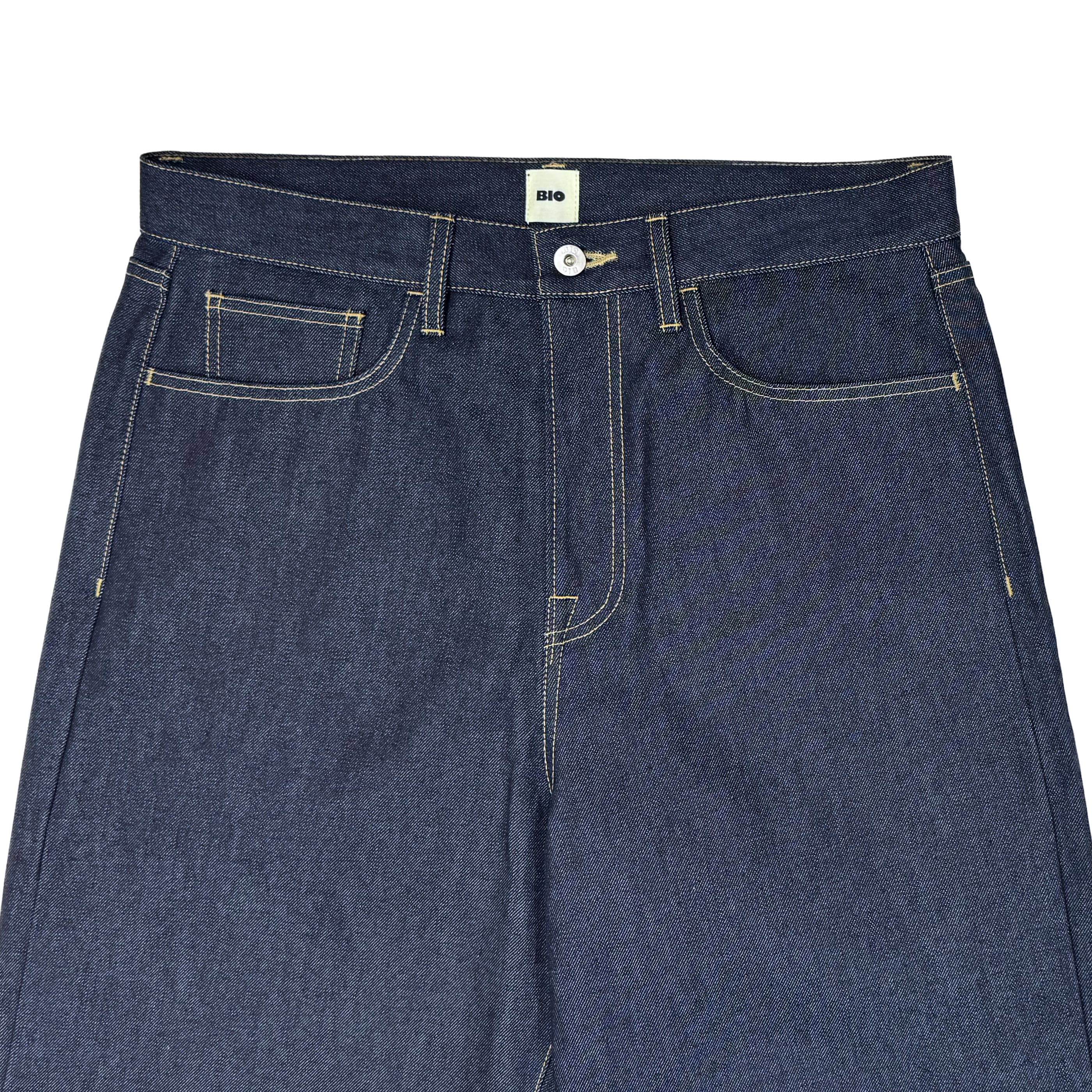 BIOのクラシックジーンズは程よいワイドシルエットでハイとローウエストどちらでも着用可能。